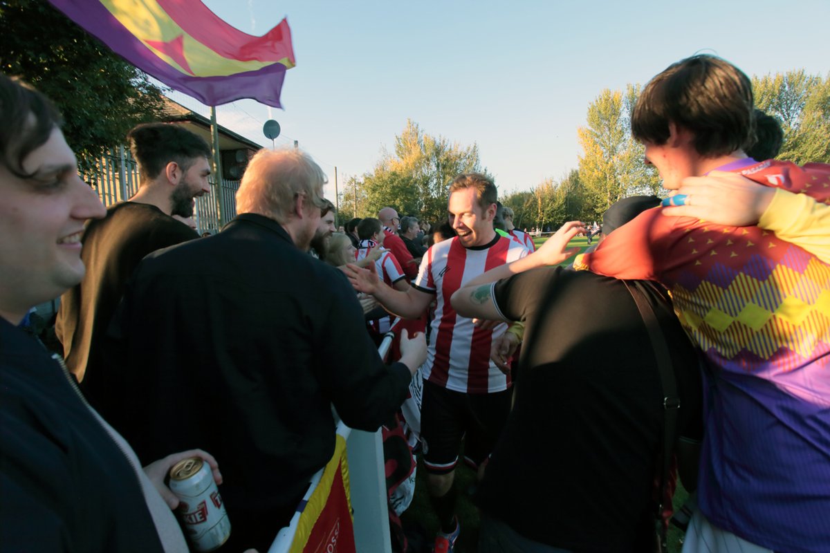 After an injury time period that seemed to last an eternity, the ref finally blew his whistle and the jubilant younger Tons fans celebrated on the pitch with their team in the late afternoon sunshine.