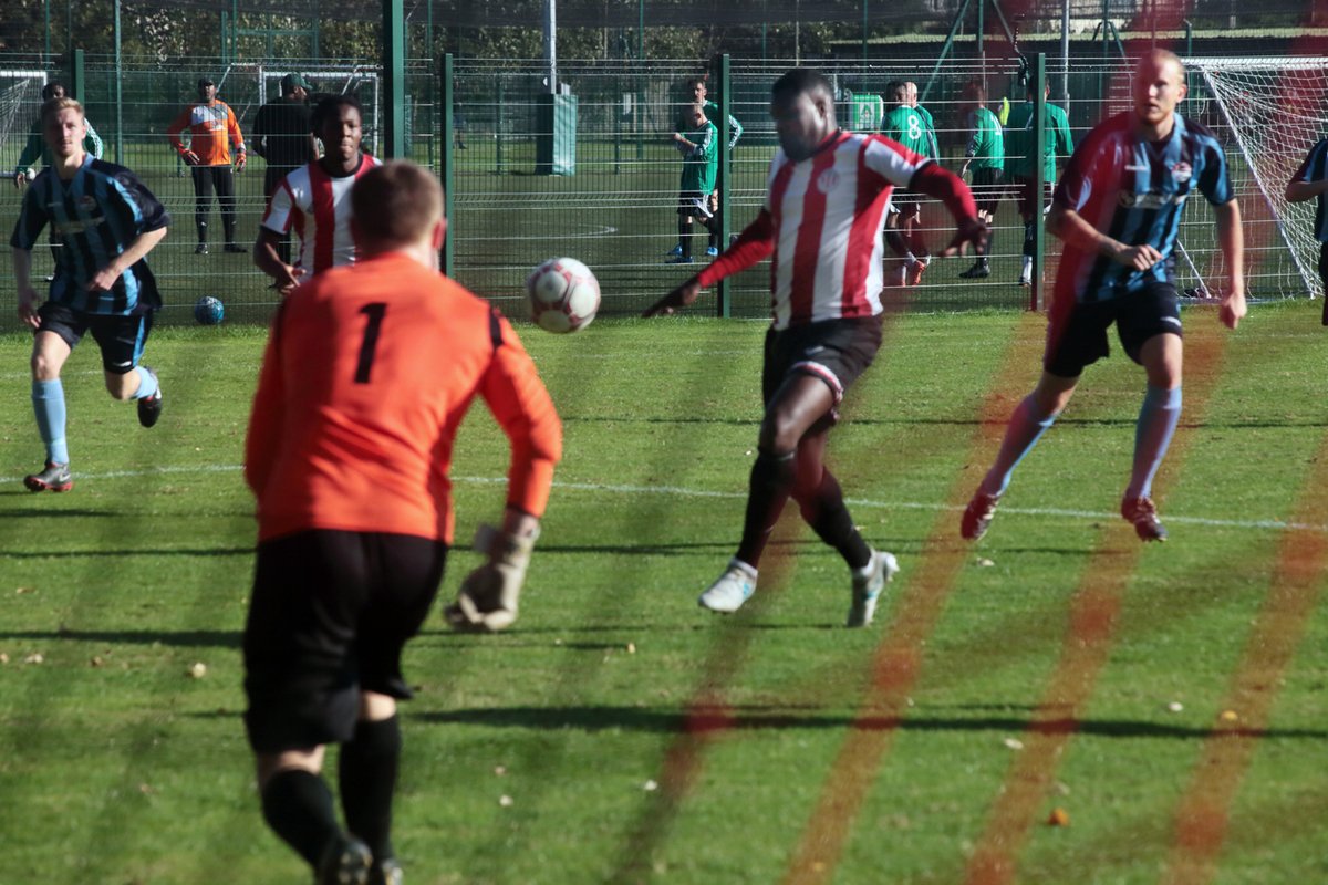 Just over ten minutes later Clapton had their own chance from a similar position. Ocran hit a great ball into the centre of the Epping penalty area, however none of the three onrushing Clapton attackers were able to connect with it to seal the win.