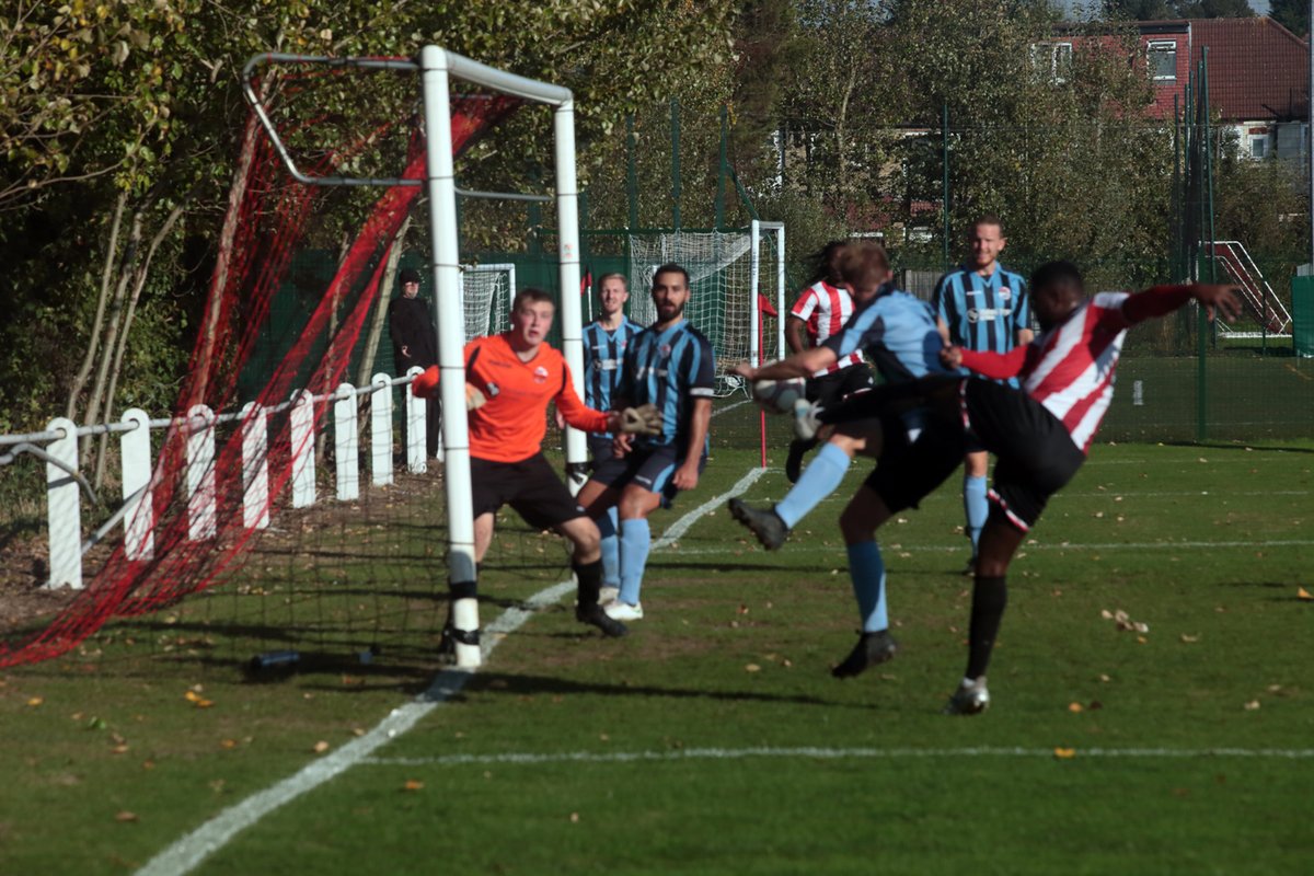 There was a slight worry at the fifteen minute mark as Bendovskyy pulled up with an apparent injury just after clearing the ball from another Epping attack. The club physio was called on and it was a nervy few minutes for a Tons team that had no substitute goalkeeper before he was back on his feet. Relief all round.