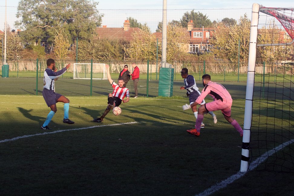 Clapton’s fifth was the result of persistent closing down of opposition midfielders. Having won the ball on the right wing, Stanley unselfishly rolled the ball back to the incoming Louis Rene, whose low shot deflected past the hapless ‘keeper.