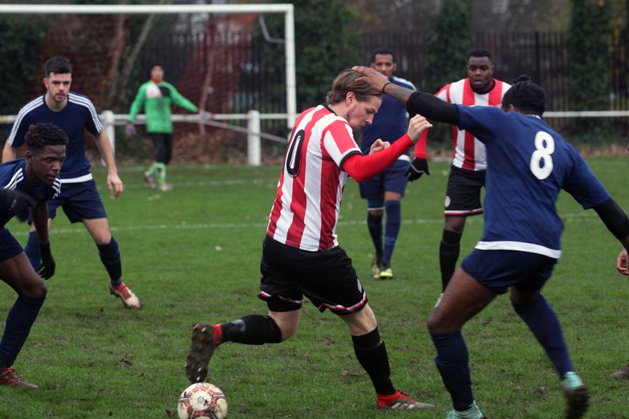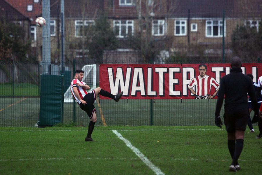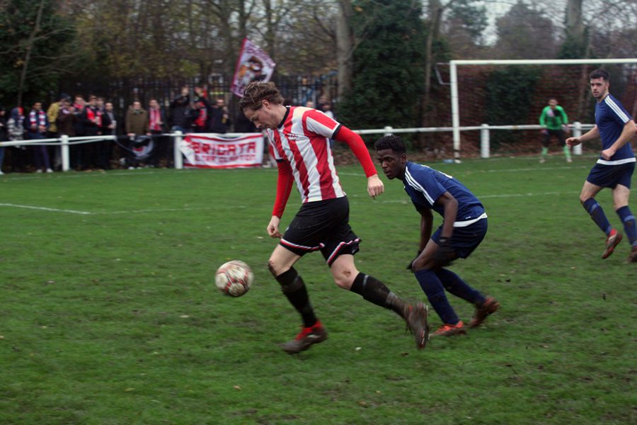Many non-league fixtures around the south east were postponed due to a rainy week, but the Stray Dog was still in a suitable condition for play. However, the slow, heavy pitch had the potential to cause problems for a Clapton side that has adopted a style of play involving a lot of passing and ball movement.