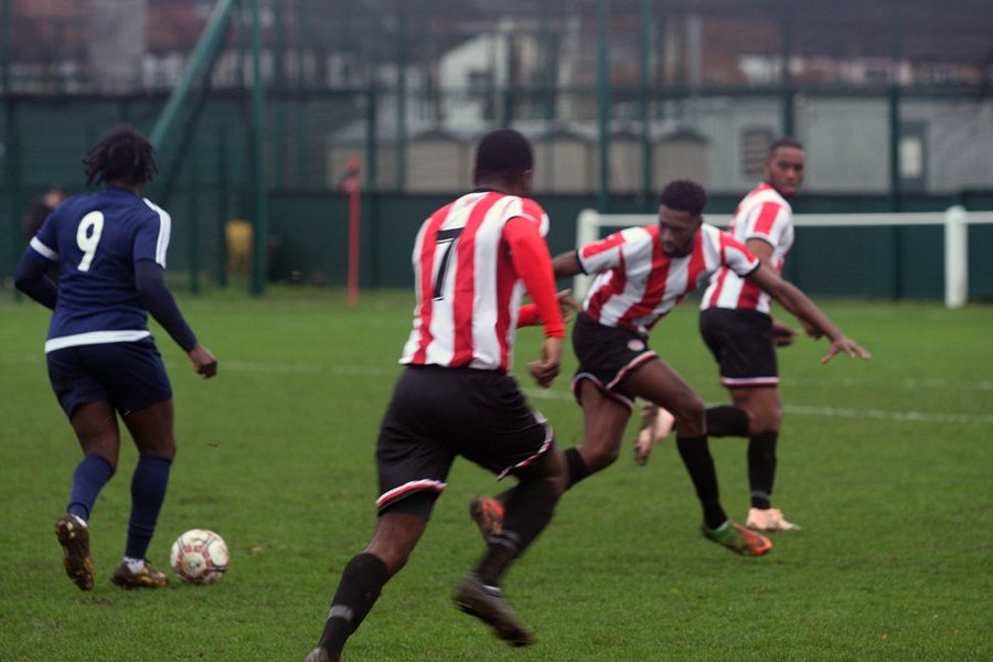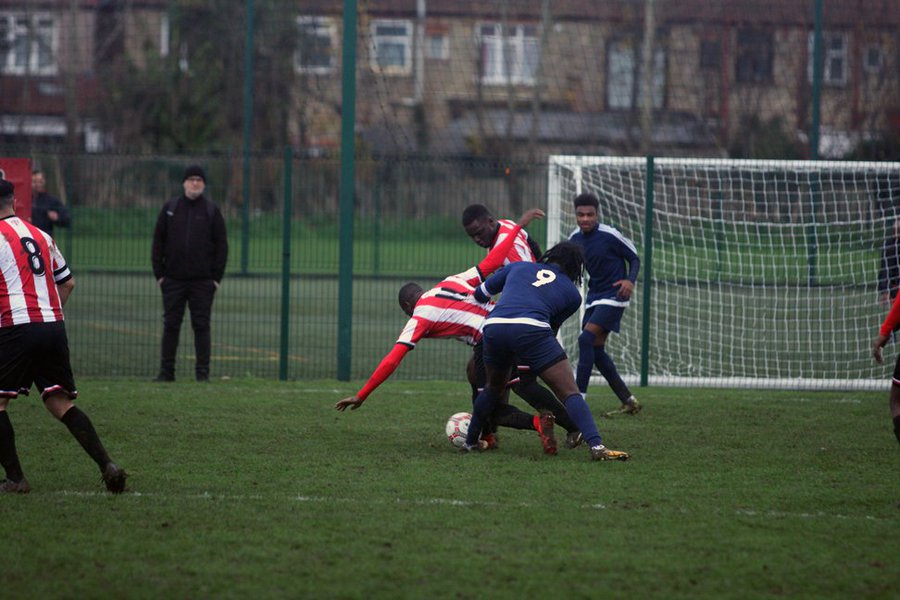 As the second half began, the conditions were still causing a challenge for both sides, wary of injuries on the slippery pitch. However, early on Eastfield looked ready to make another of their speedy attacks, only to be stopped by a brave challenge from Dean Bouho who came racing in at full speed to shut their winger down, almost getting some Eastfield boot studs in his head for his troubles.