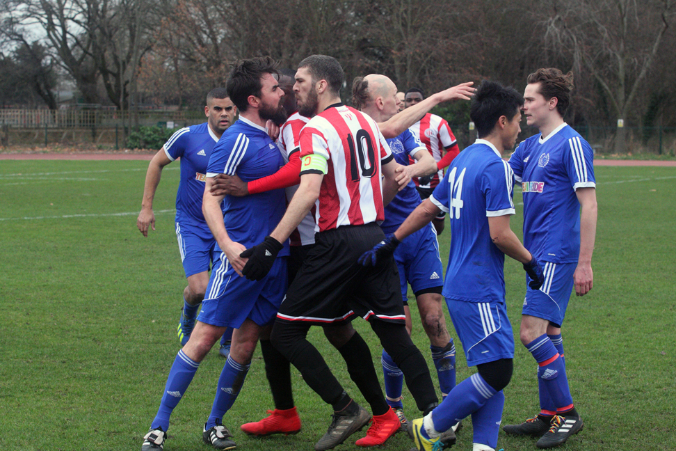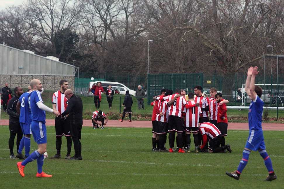 The Stonewall players seemed too embarrassed to wildly celebrate in front of the Clapton fans by this point and just jogged back to halfway.