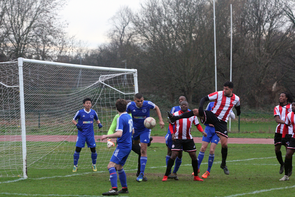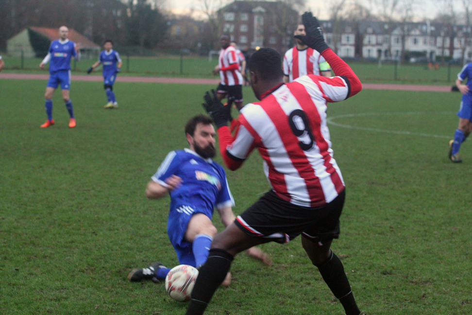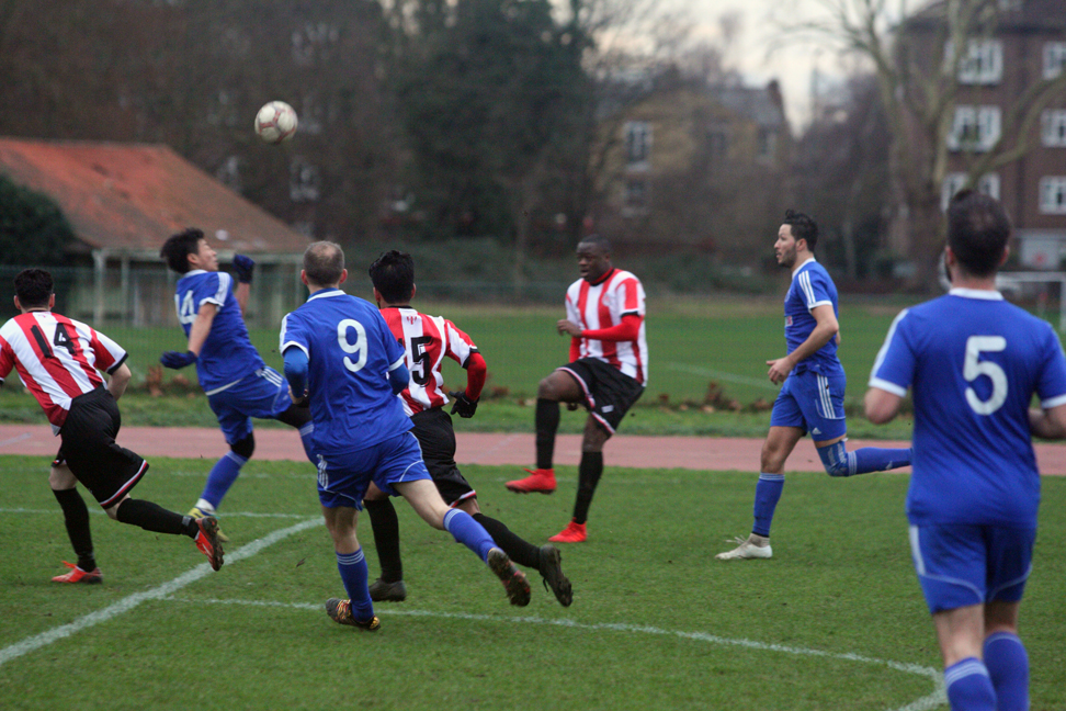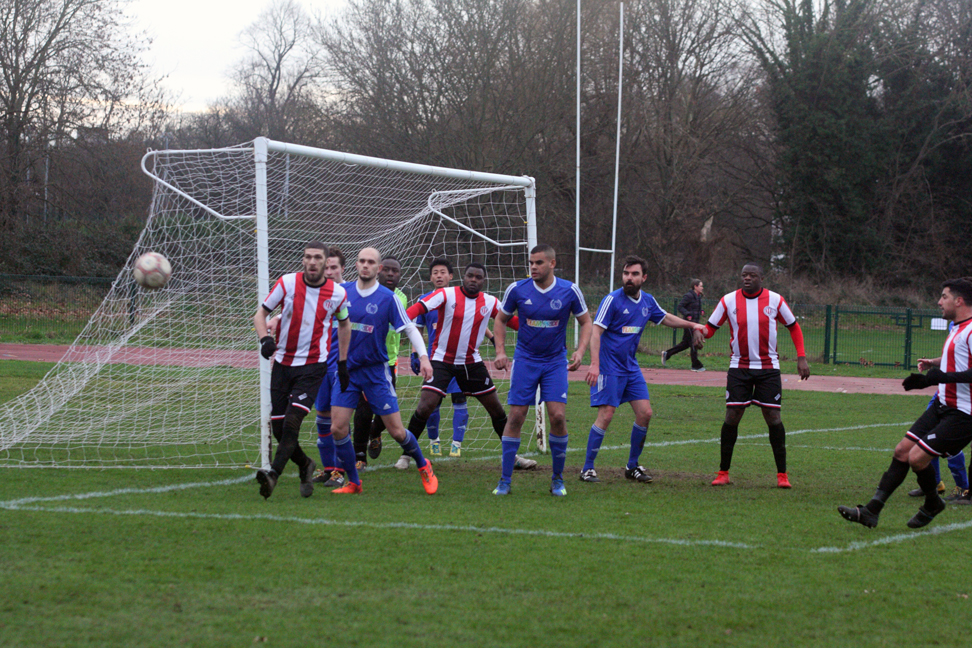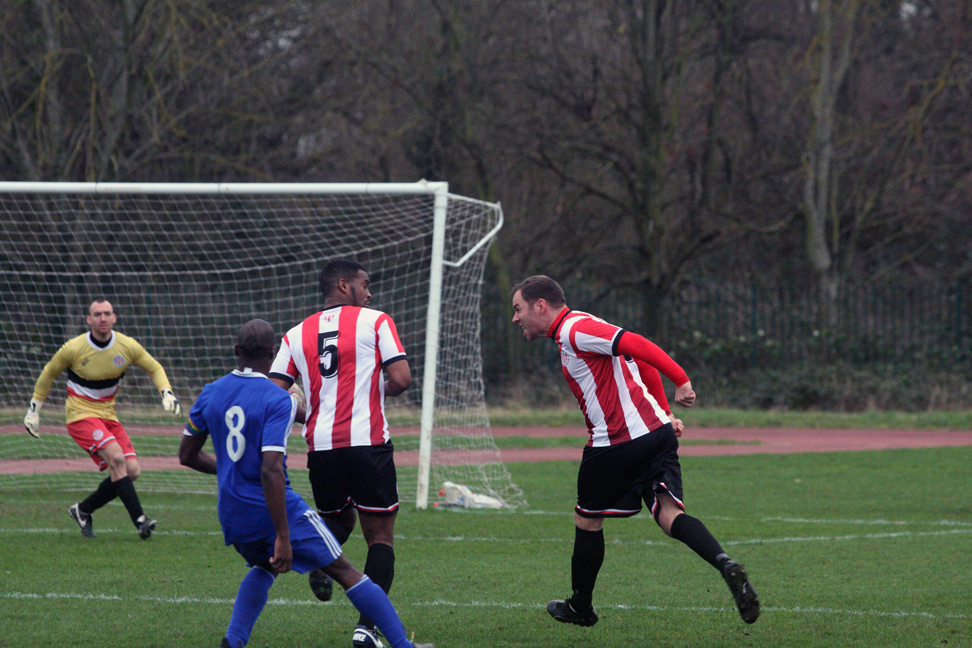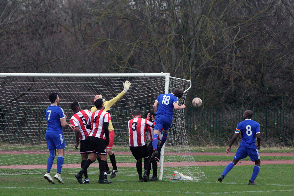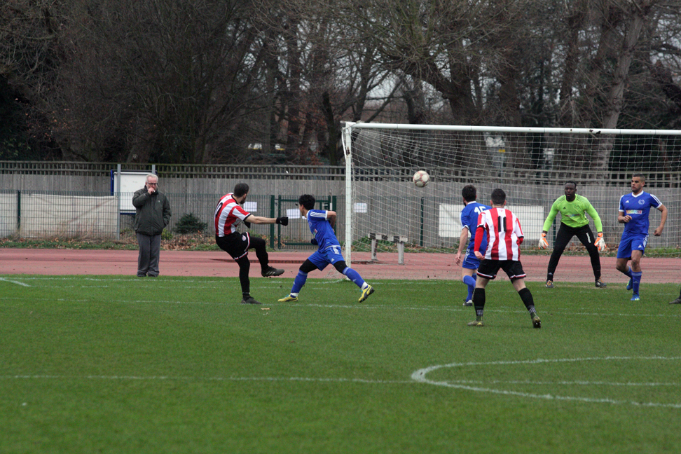 A poor goalkick saw Clapton coming straight back at them. Adejokun looped the ball along the goal line, with goalie Aware nowhere to be seen. Stanley rushed in, but just failed to connect to tap into the empty net. The ball went all the way through to an off-balance Crosbie, who couldn’t turn in from the tight angle.