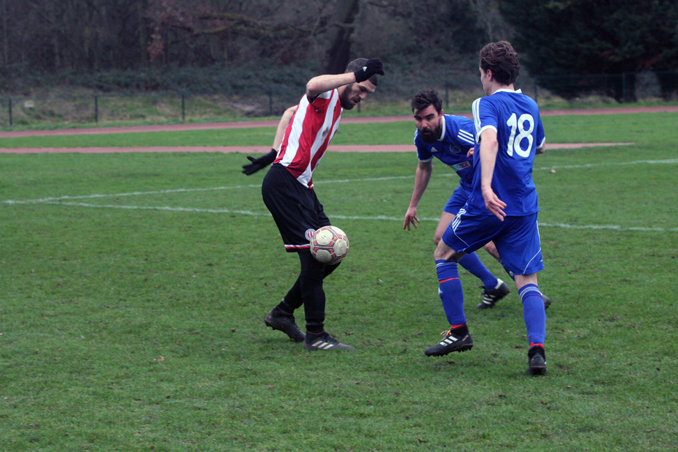 At the other end, Nasar Nakhli had a snapshot from the edge of the box. Anfossy, rooted to the spot, was relieved to see the ball squirm just wide.