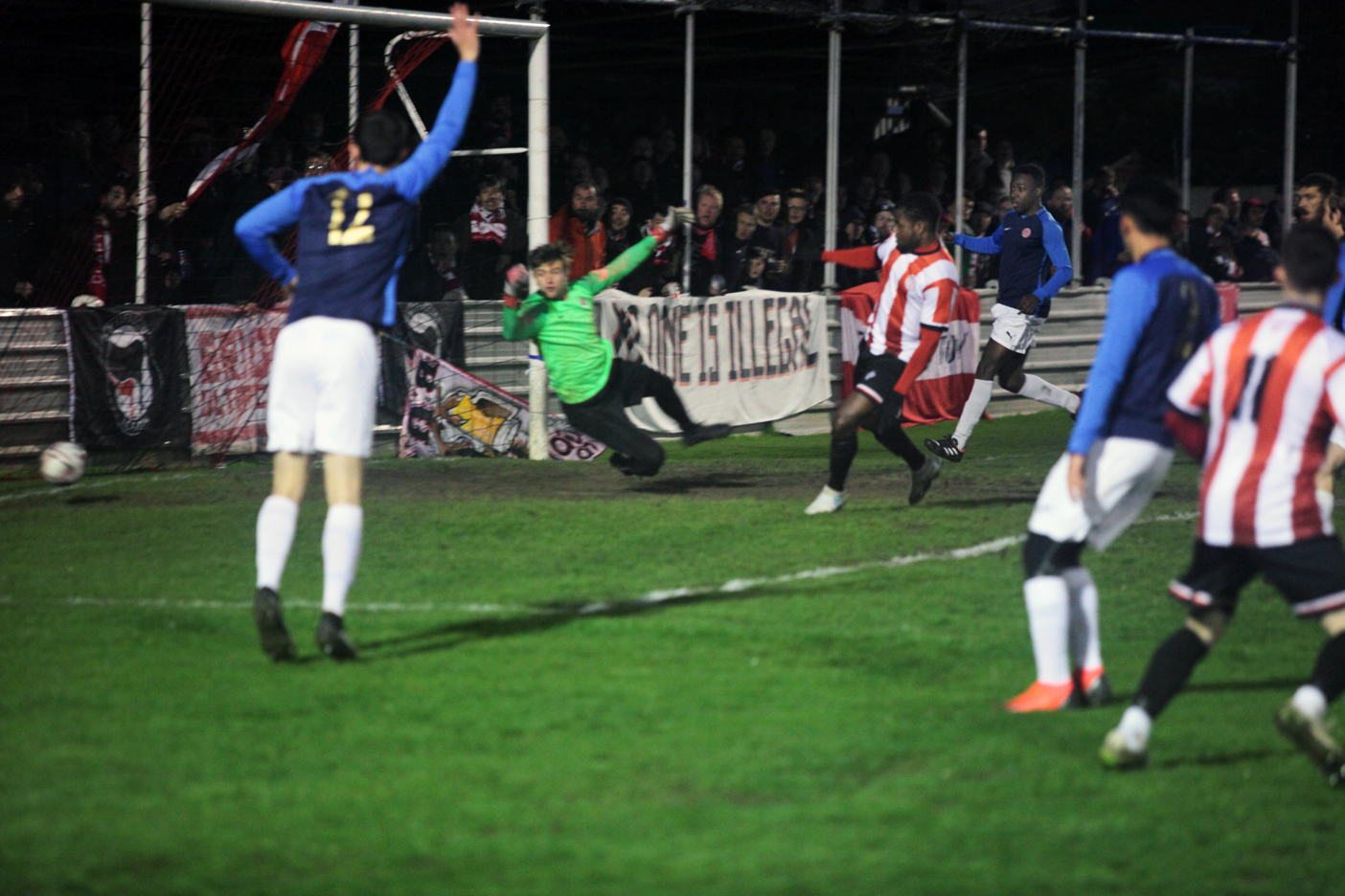 The NW keeper rushed out to cut off an advancing Adejokun. The ball broke to sub Lewis Owiredu who tried to curl it into the unguarded net. But it whizzed agonisingly wide of the post.