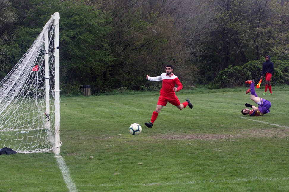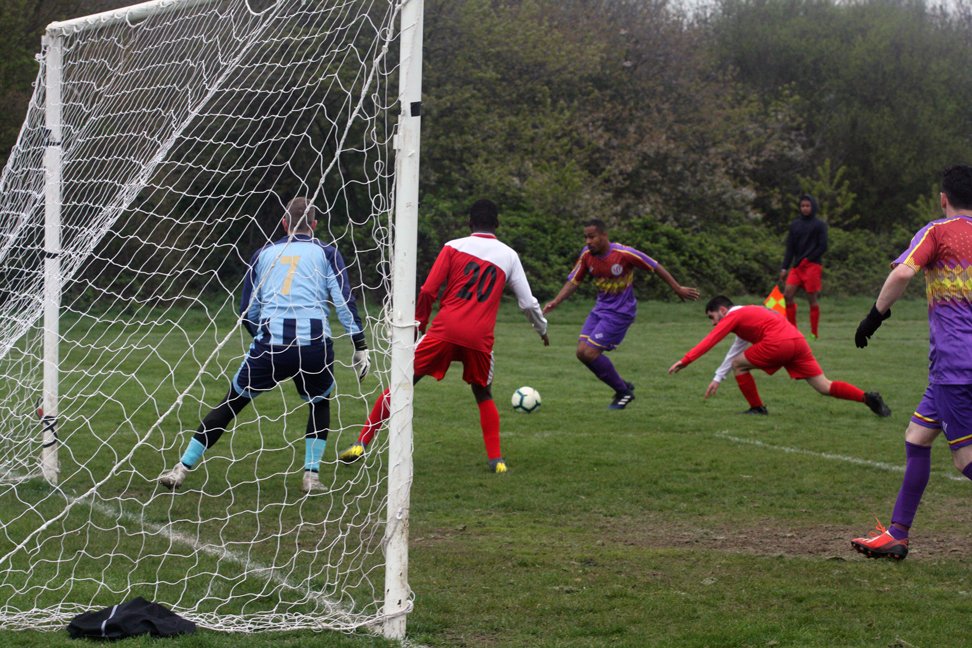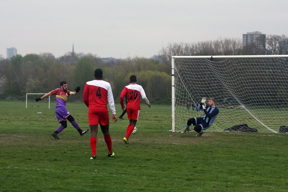 Finally on the third or fourth effort, Eliot got hold of the ball and struck it into the bottom left to send Clapton into the break with a two goal cushion.