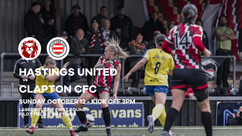 Hastings United vs Clapton Community FC is on Sunday, October 12 2025 at 3pm Pilot Field, Elphinstone Road, Hastings East Sussex, TN34 2AX