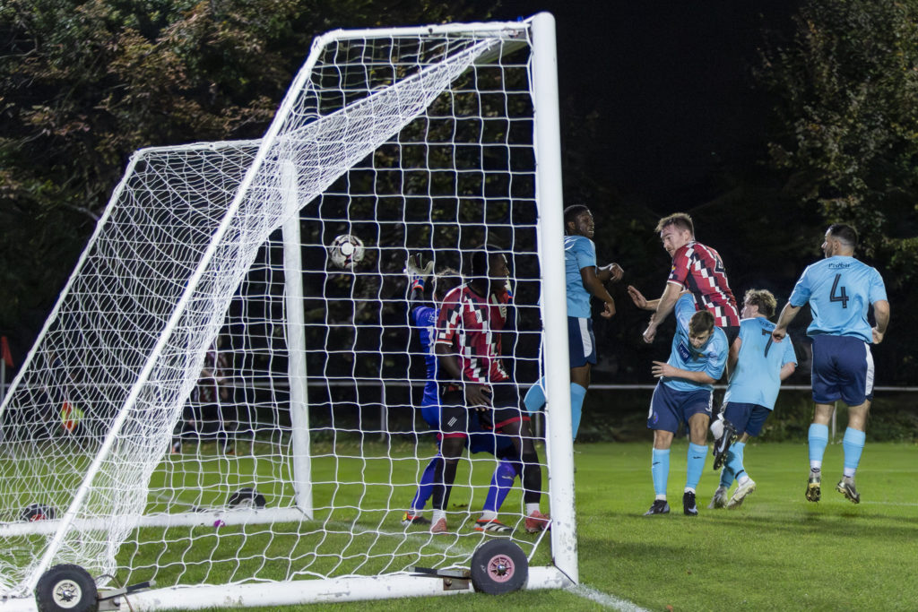 Despite Rayleigh’s pressure, it was Clapton who notched next. A Briggs corner from the right was met with a thumping header from Will Wright at the near post for 2-0.