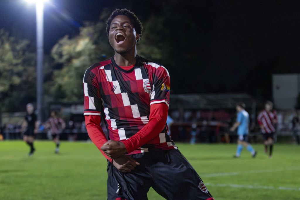 Clapton CFC’s Men’s First Team survived a nervy finish to run out 4-2 winners at the Old Spotted Dog Ground against fellow playoff hopefuls Rayleigh Town FC.