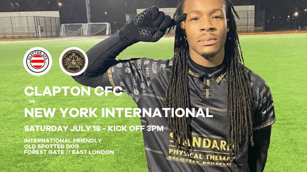 It’s hard to find a good news story coming out of the USA at the moment. Bucking that trend, Clapton CFC Men’s First Team will play New York International FC, coming straight from Mamdani’s New York, in a pre-season friendly at the Old Spotted Dog Ground on Saturday, July 18.